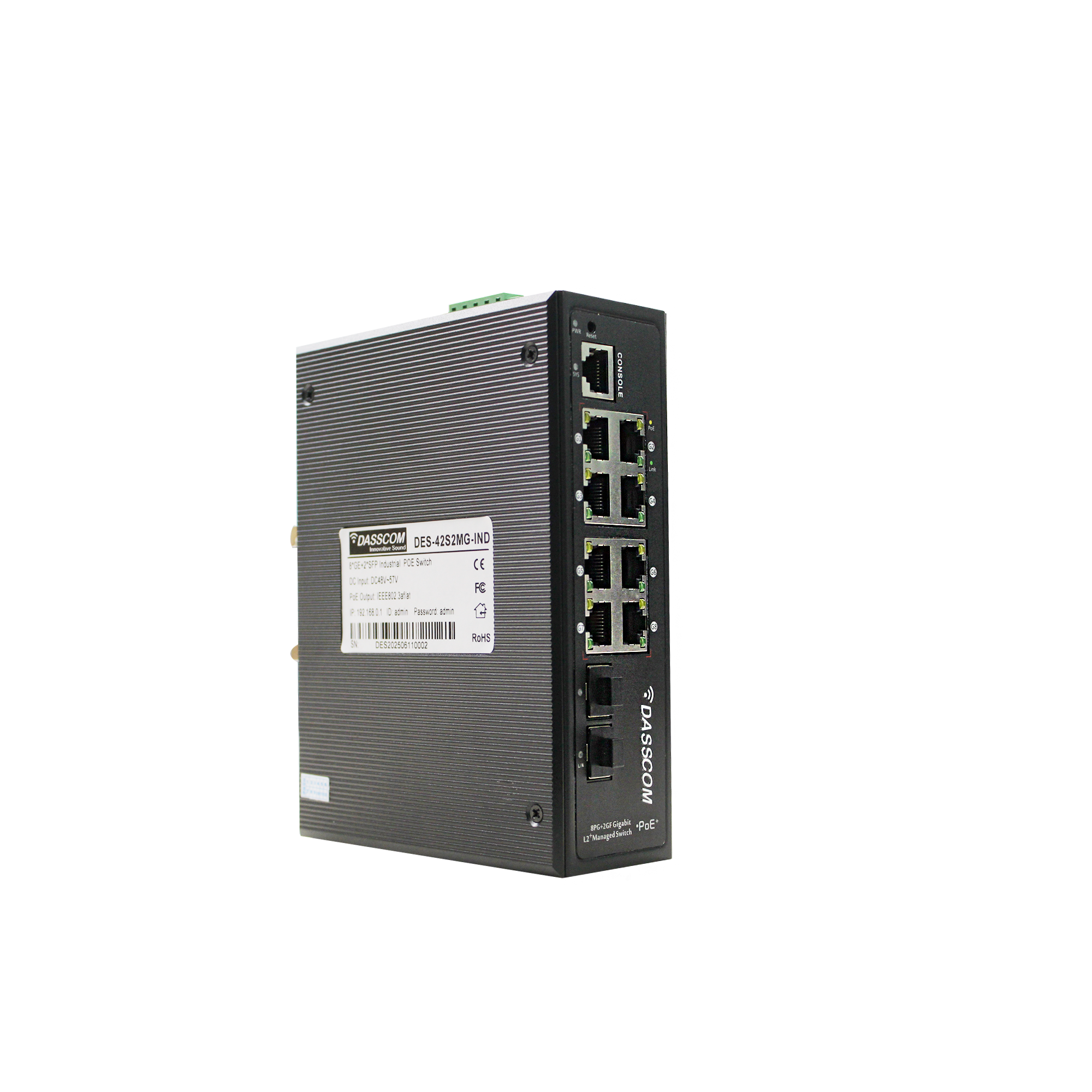 Dasscom’s Industrial Switches provide IT teams and network administrators with complete control over network performance, security, and segmentation. Supporting VLANs, QoS, link aggregation, SNMP, and more, these switches are ideal for enterprise networks, VoIP infrastructure, and data-intensive applications. Their intuitive web interfaces and CLI access allow for real-time monitoring and traffic management, while advanced protection features guard against unauthorized access and network loops. Engineered for performance and uptime, Dasscom Industrial l switches ensure stable and scalable connectivity across demanding environments like business campuses, smart buildings, and multi-floor setups.
