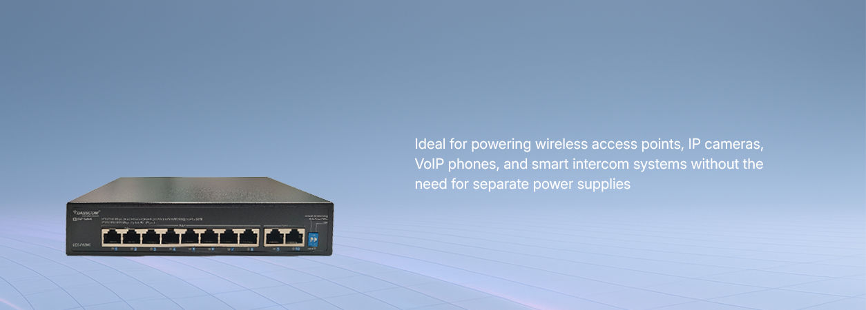 The Dasscom DES-82MG is a reliable and cost-effective 8 port PoE switch designed for modern enterprises, campuses, hospitality, and security environments that demand seamless power and data transmission. With 8×10/100M PoE ports and 2×10/100/1000M Gigabit uplink ports, this switch delivers both speed and stability while powering essential devices such as IP cameras, wireless access points, VoIP phones, and intercom systems.