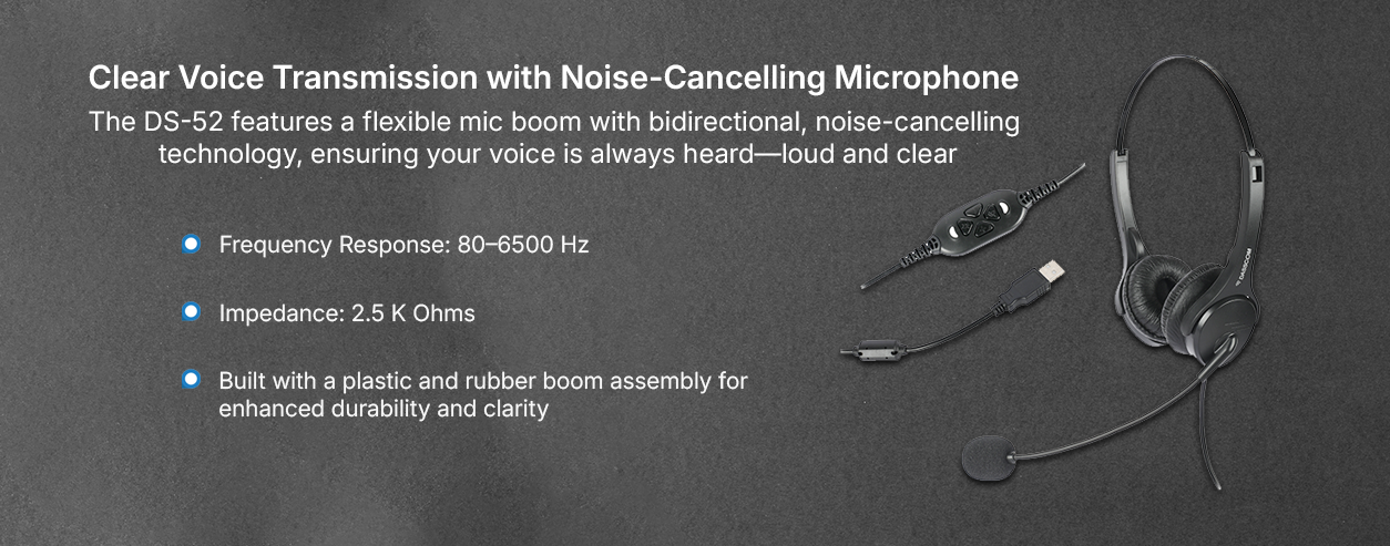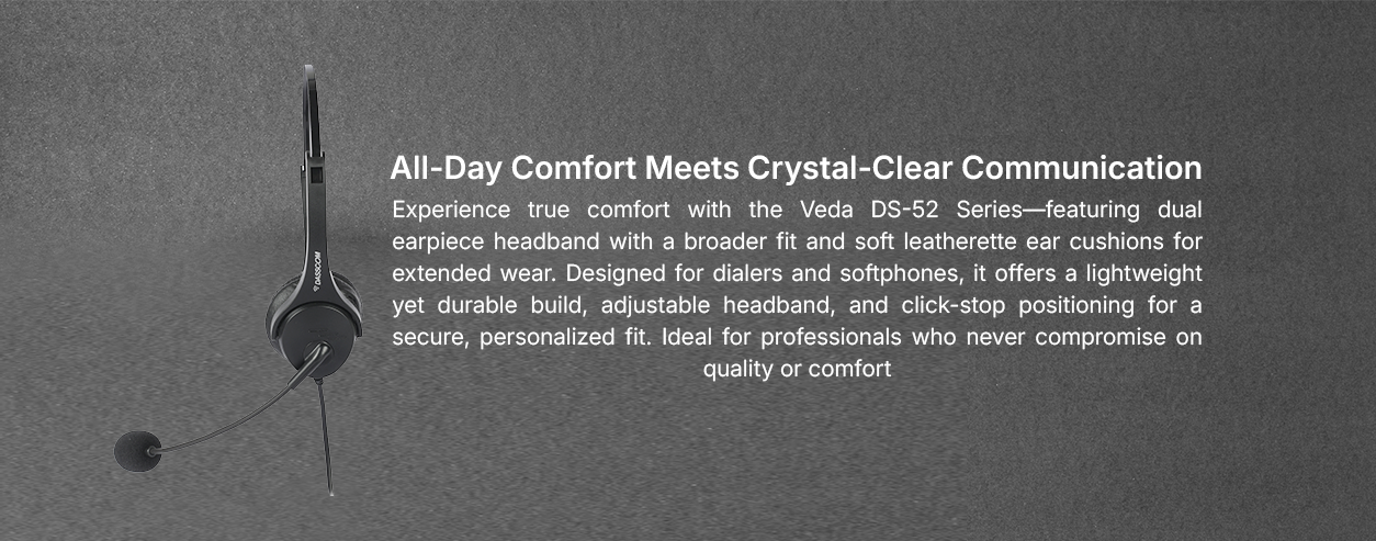 Veda Headset DS-52 Series is a professional-grade dual-earpiece headset designed for users who need clarity, comfort, and durability in one package. Featuring a broader headband and ultra-soft leatherette ear cushions, the DS-52 ensures long-lasting comfort even during extended calls. Ideal for use with dialers and softphones, this headset delivers excellent audio performance for call centers, customer support teams, and office professionals. Built with a lightweight yet rigid frame, it offers lasting durability without compromising on ease of use. Whether in high-traffic environments or remote workstations, the DS-52 Series ensures reliable communication, day in and day out.