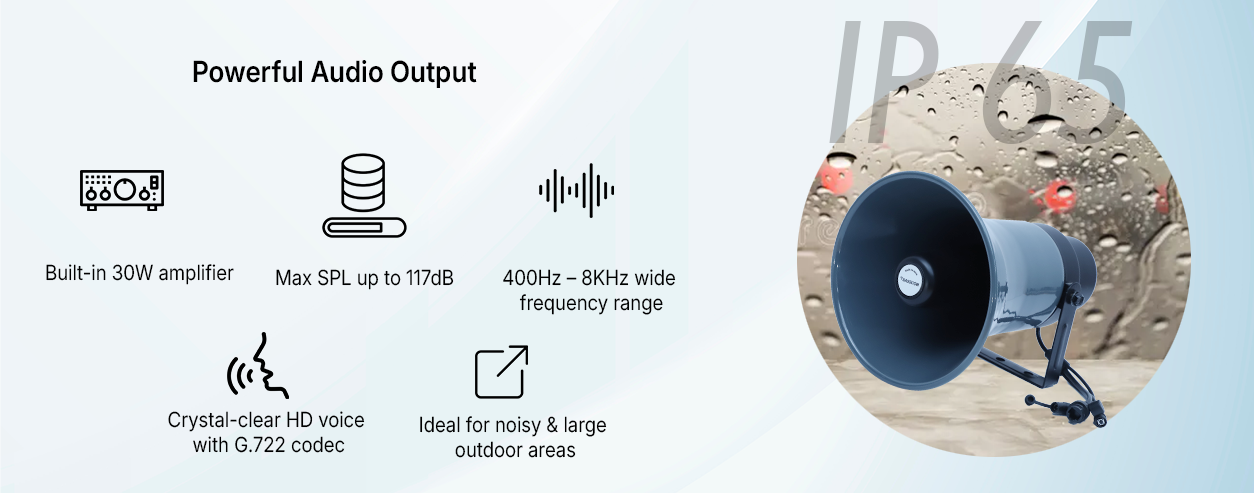 “Quick installation, seamless SIP integration, and crystal-clear output. Exactly what we needed for our factory.” – IT Head, Manufacturing Plant